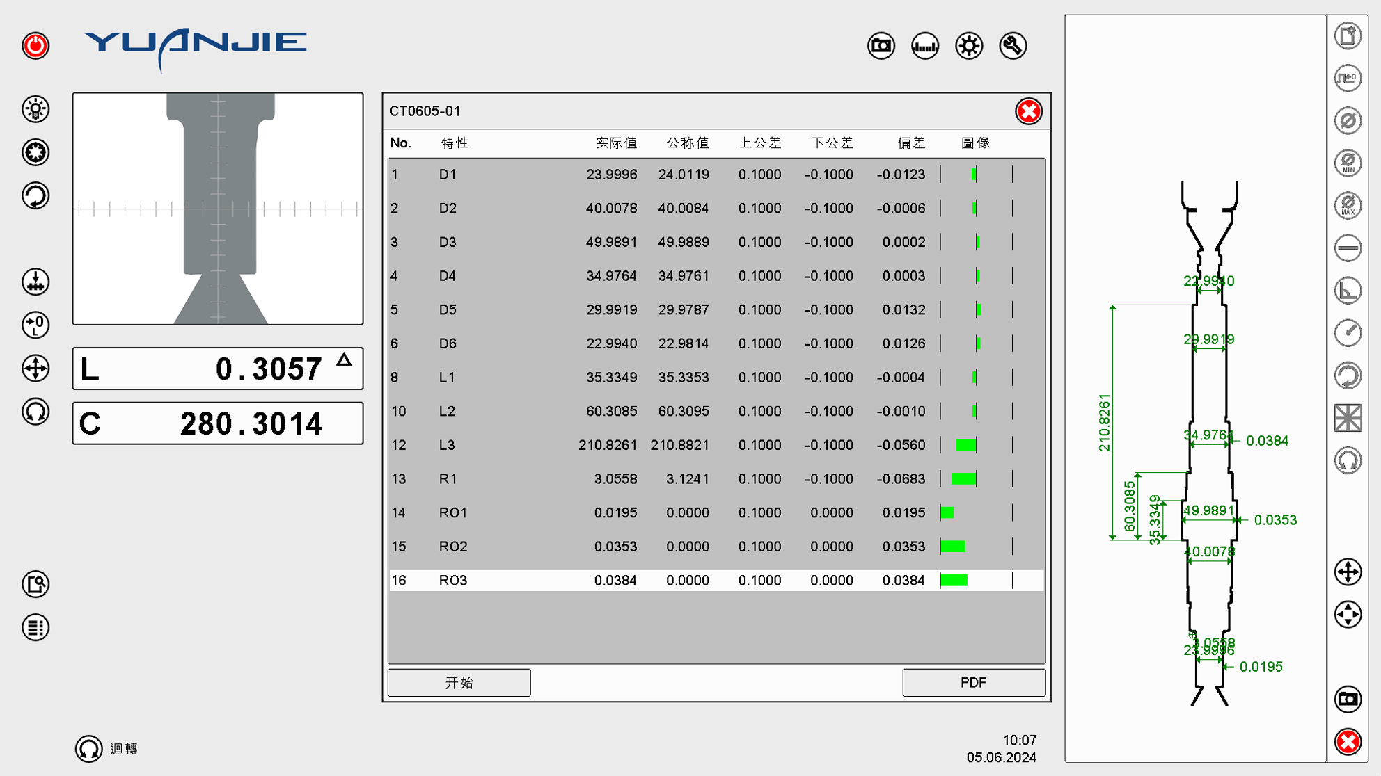 所有特征都可根据编程自动测量,测量结果直观显示在屏幕上,并自动保存为PDF和DFQ格式(根据AQDEF由Q-DAS认证)。
